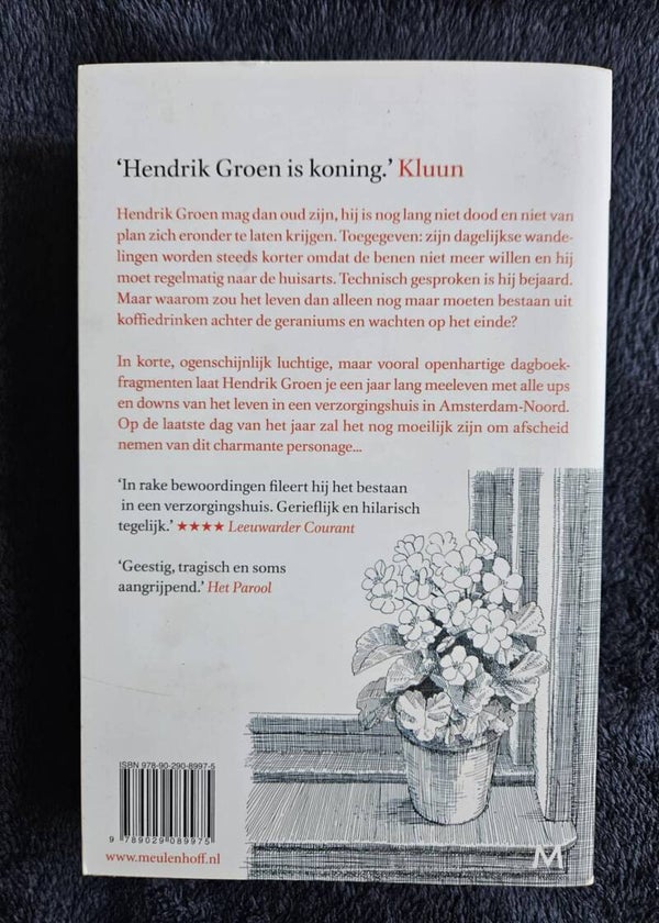 Beschrijving: Hendrik Groen mag dan oud zijn, hij is nog lang niet dood en niet van plan zich eronder te laten krijgen. Toegegeven: zijn dagelijkse wandelingen worden steeds korter omdat de benen niet meer willen en hij moet regelmatig naar de huisarts. Technisch gesproken is hij bejaard. Maar waarom zou het leven dan alleen nog maar moeten bestaan uit koffiedrinken achter de geraniums en wachten op het einde?