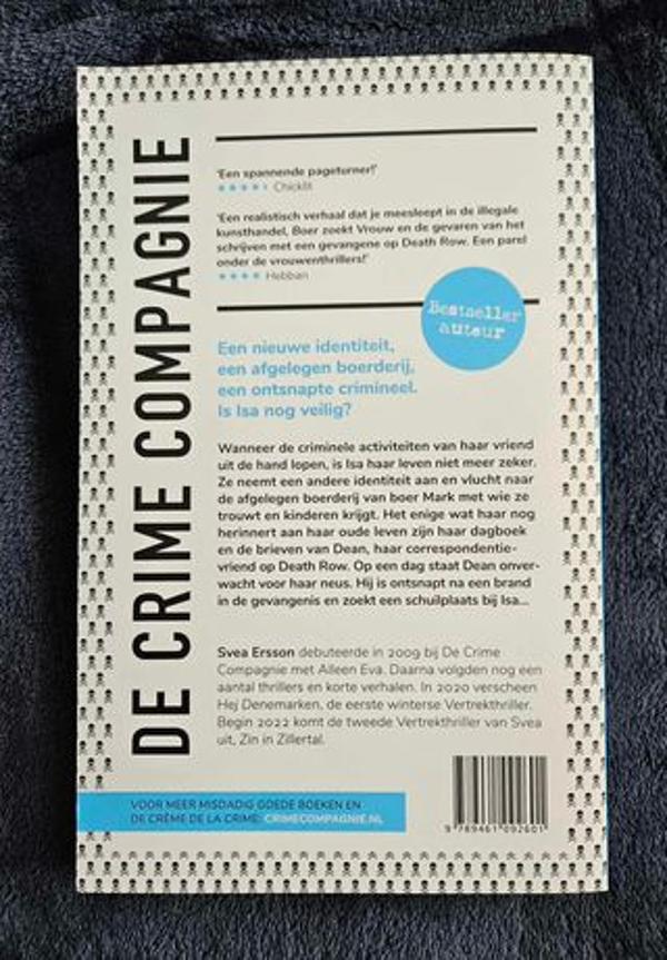 Beschrijving: Geheimen komen altijd uitWanneer de criminele activiteiten van haar vriend uit de hand lopen, is Isa haar leven niet meer zeker. Ze neemt een andere identiteit aan en vlucht naar de afgelegen boerderij van boer Mark met wie ze trouwt en kinderen krijgt. Het enige wat haar nog herinnert aan haar oude leven zijn haar dagboek en de brieven van Dean, haar correspondentievriend op Death Row. Op een dag staat Dean onverwacht voor haar neus. Hij is ontsnapt na een brand in de gevangenis en zoekt een schuilplaats bij Isa…