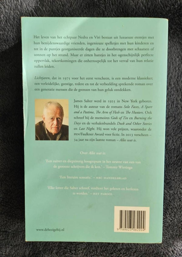 Beschrijving: Het leven van het echtpaar Nedra en Viri bestaat uit luxueuze etentjes met hun benijdenswaardige vrienden, ingenieuze spelletjes met hun kinderen en tot in de puntjes georganiseerde dagen die ze doorbrengen met schaatsen of zonnen op het strand. Maar er zitten barstjes in het ogenschijnlijk perfecte oppervlak, tekortkomingen die onherroepelijk tot het verval van hun relatie zullen leiden.Lichtjaren, dat in 1975 voor het eerst verscheen, is een moderne klassieker; een verleidelijke, geestige, tedere en tot de verbeelding sprekende roman over een generatie mensen die de grenzen van hun geluk ontdekken.