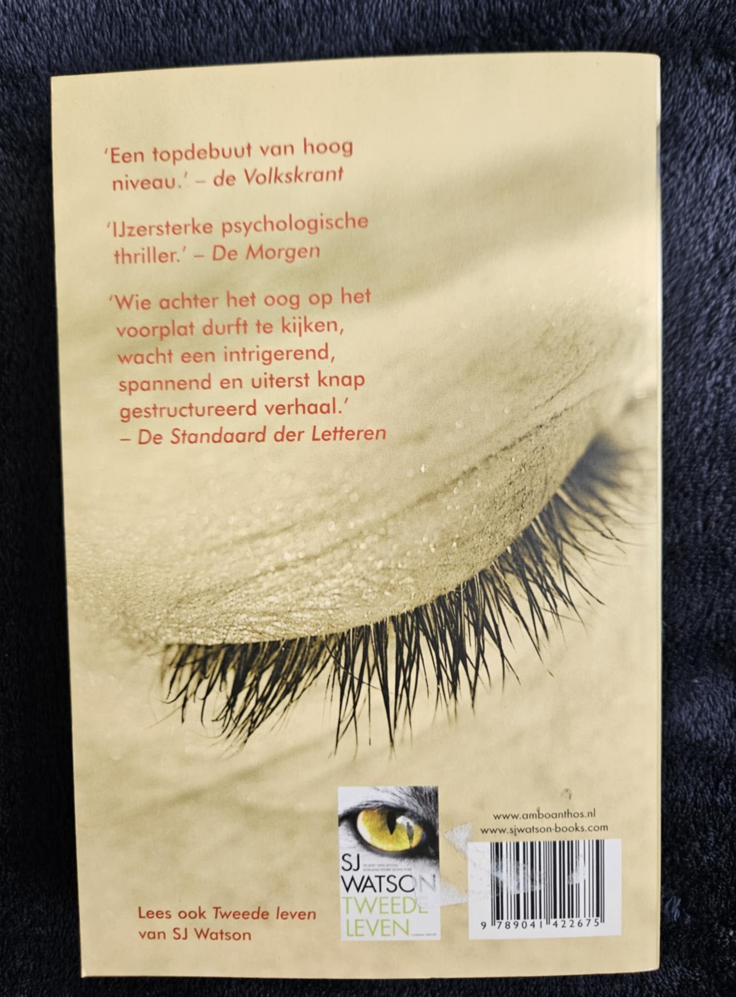 Beschrijving: Christine wordt`s ochtends wakker in een vreemd bed, in een vreemd huis, naast een man die ze niet kent. Ze herinnert zich niets van wat er die nacht is gebeurd en besluit snel haar kleren aan te trekken en naar huis te gaan. Maar dan ziet ze zichzelf in de spiegel. Christine herkent zichzelf niet: ze is veel ouder dan ze dacht.De man vertelt haar dat hij Ben heet en dat ze al tweeëntwintig jaar getrouwd zijn. Dat ze in haar eigen huis is. En dat haar geheugen jaren geleden is aangetast door een ernstig ongeluk. Elke nacht als Christine gaat slapen worden haar herinneringen gewist. Elke ochtend opnieuw moet iemand haar vertellen wie ze is.